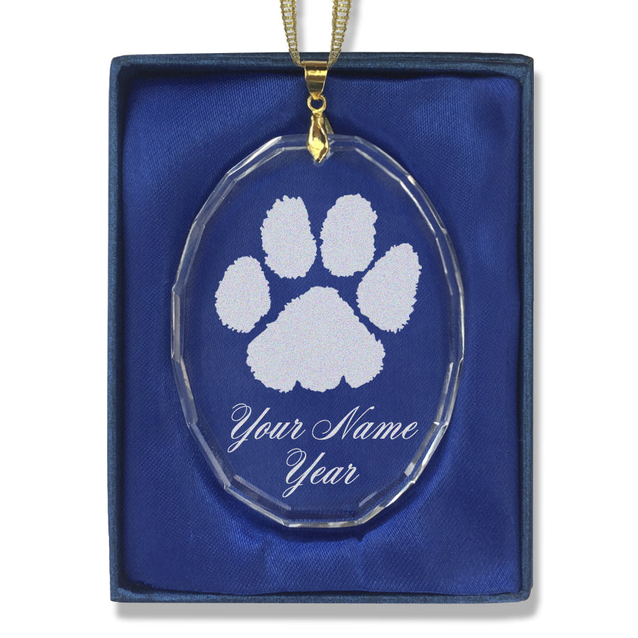 LaserGram Christmas Ornament, Paw Print, Personalized Engraving Included (Oval Shape)