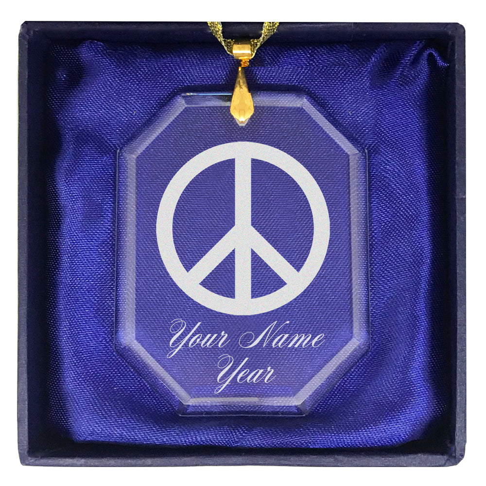 LaserGram Christmas Ornament, Peace Sign, Personalized Engraving Included (Rectangle Shape)