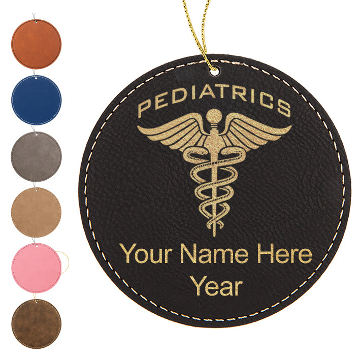 LaserGram Christmas Ornament, Pediatrics, Personalized Engraving Included (Faux Leather, Round Shape)