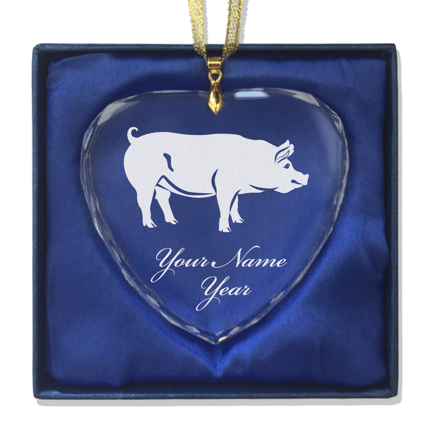 LaserGram Christmas Ornament, Pig, Personalized Engraving Included (Heart Shape)