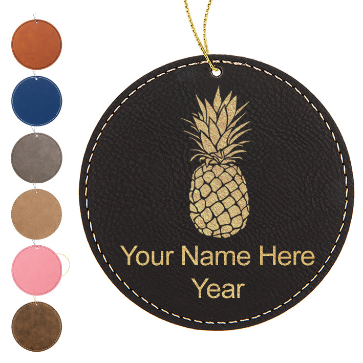 LaserGram Christmas Ornament, Pineapple, Personalized Engraving Included (Faux Leather, Round Shape)