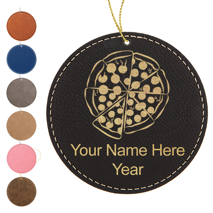 LaserGram Christmas Ornament, Pizza, Personalized Engraving Included (Faux Leather, Round Shape)