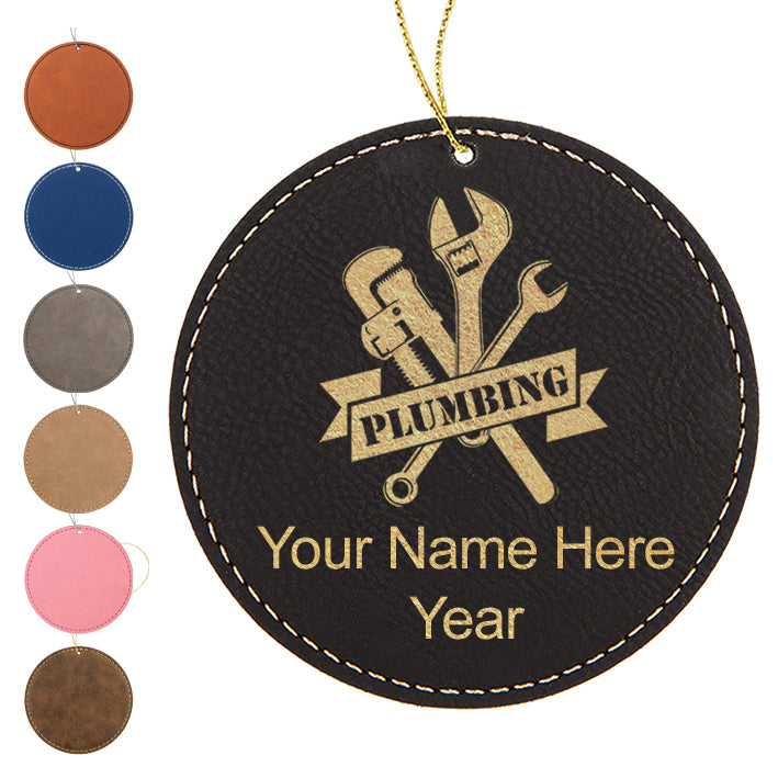 LaserGram Christmas Ornament, Plumbing, Personalized Engraving Included (Faux Leather, Round Shape)