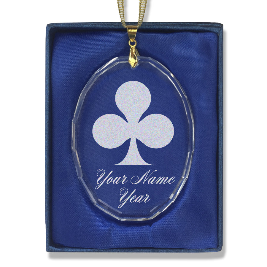 LaserGram Christmas Ornament, Poker Clubs, Personalized Engraving Included (Oval Shape)