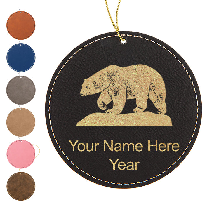 LaserGram Christmas Ornament, Polar Bear, Personalized Engraving Included (Faux Leather, Round Shape)