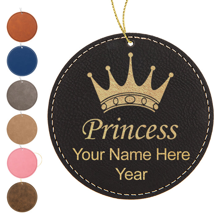 LaserGram Christmas Ornament, Princess Crown, Personalized Engraving Included (Faux Leather, Round Shape)