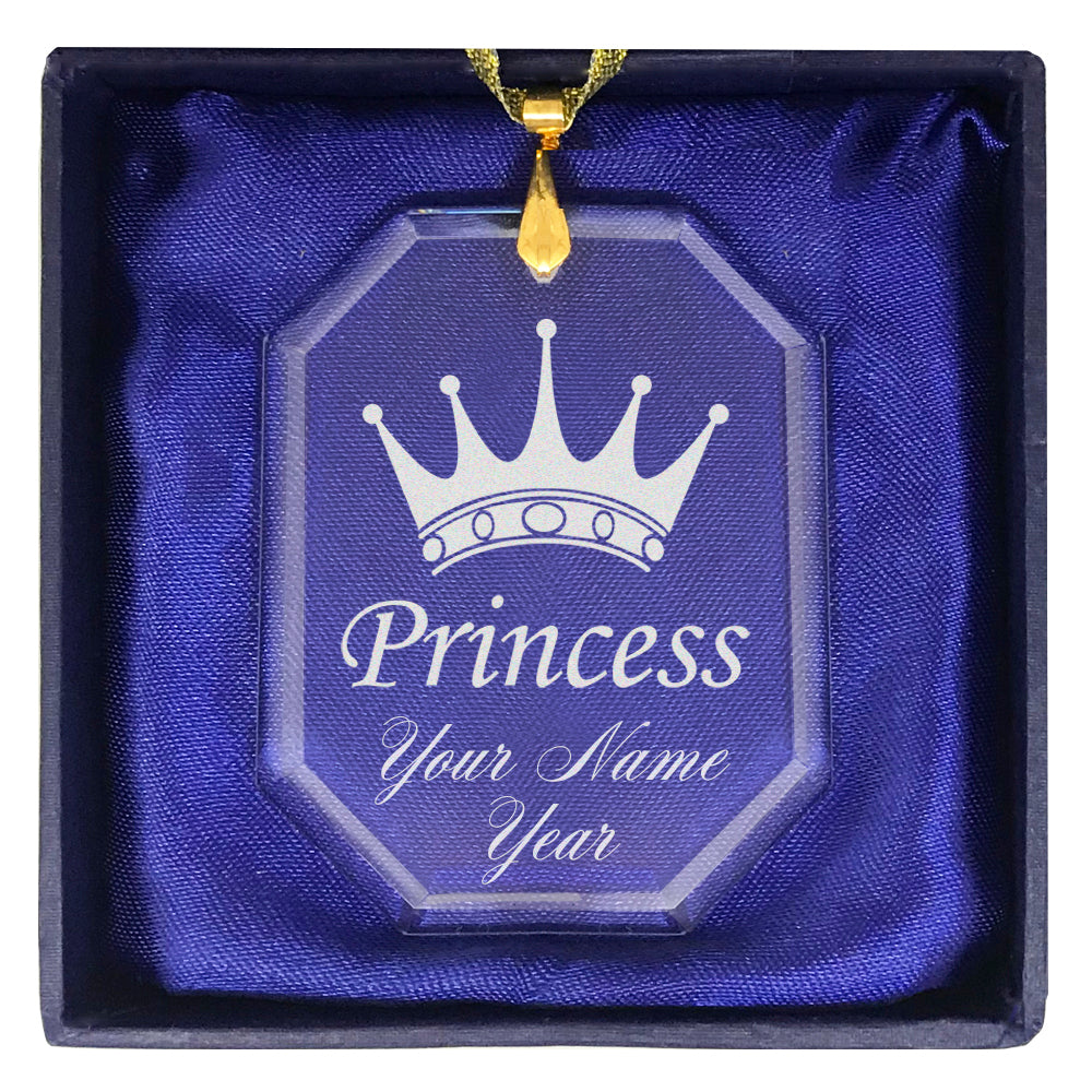LaserGram Christmas Ornament, Princess Crown, Personalized Engraving Included (Rectangle Shape)