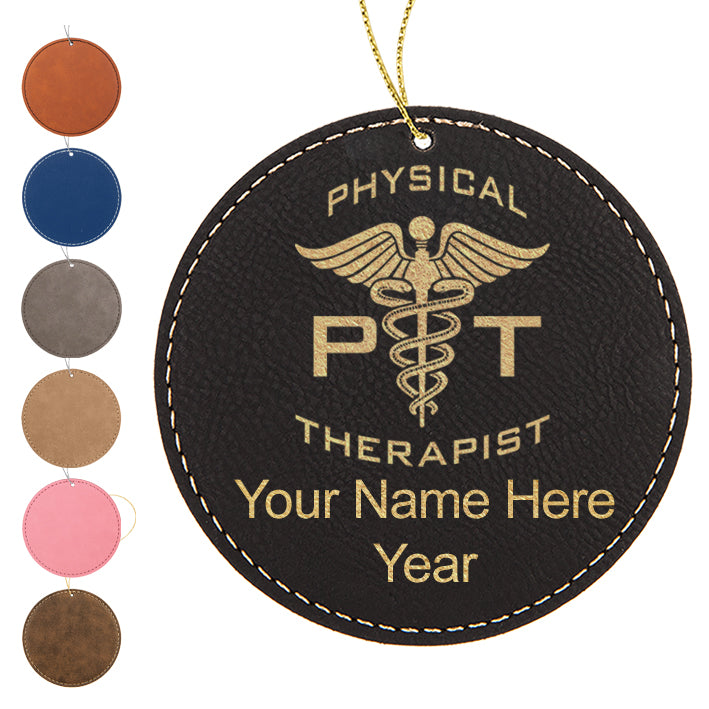 LaserGram Christmas Ornament, PT Physical Therapist, Personalized Engraving Included (Faux Leather, Round Shape)