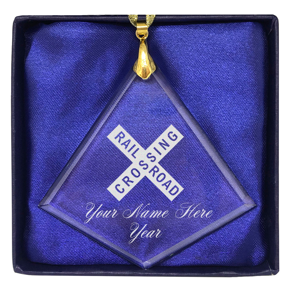 LaserGram Christmas Ornament, Railroad Crossing Sign 1, Personalized Engraving Included (Diamond Shape)