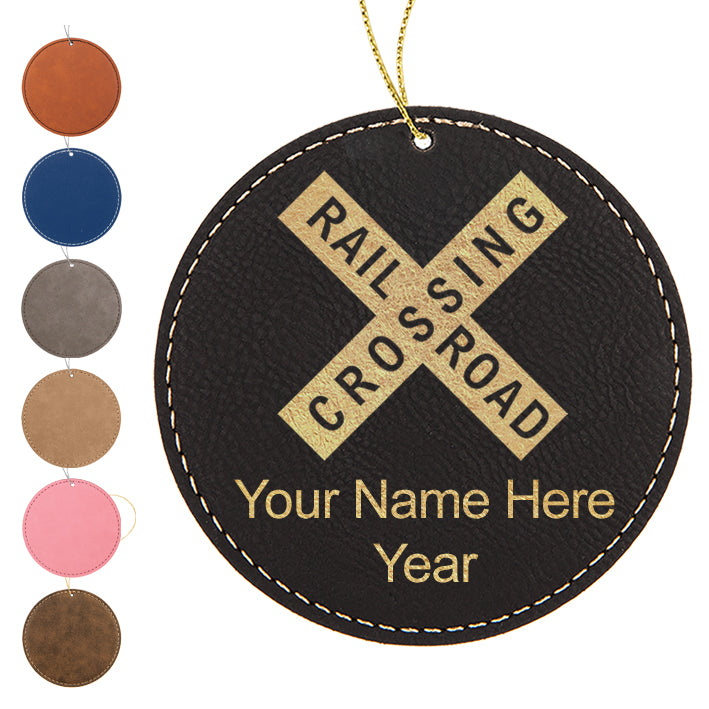LaserGram Christmas Ornament, Railroad Crossing Sign 1, Personalized Engraving Included (Faux Leather, Round Shape)