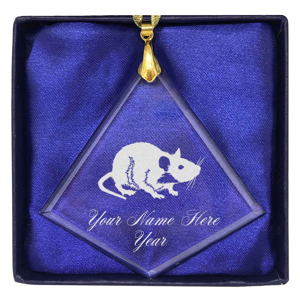 LaserGram Christmas Ornament, Rat, Personalized Engraving Included (Diamond Shape)