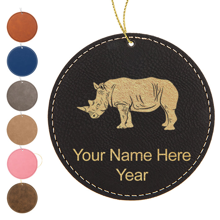 LaserGram Christmas Ornament, Rhinoceros, Personalized Engraving Included (Faux Leather, Round Shape)