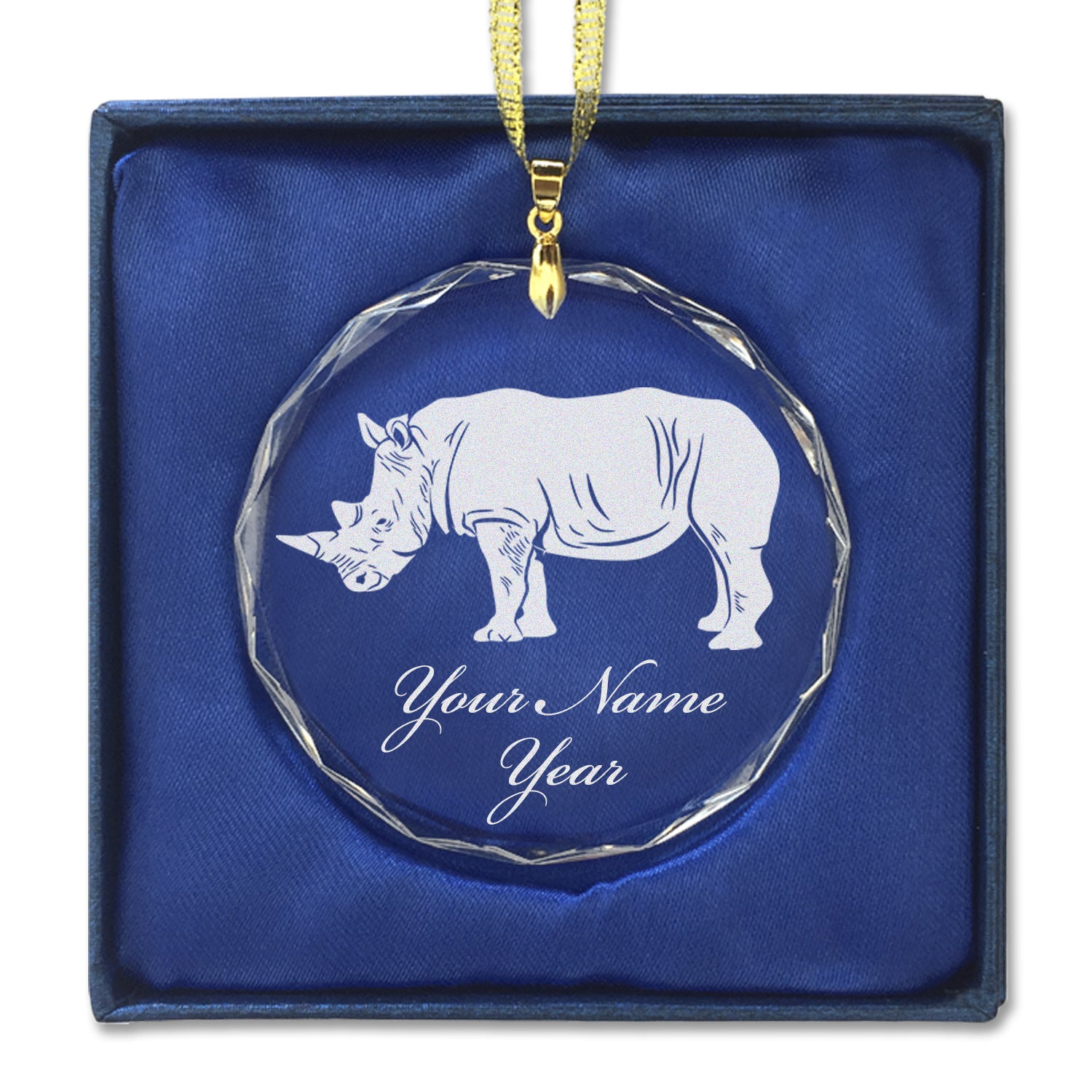 LaserGram Christmas Ornament, Rhinoceros, Personalized Engraving Included (Round Shape)