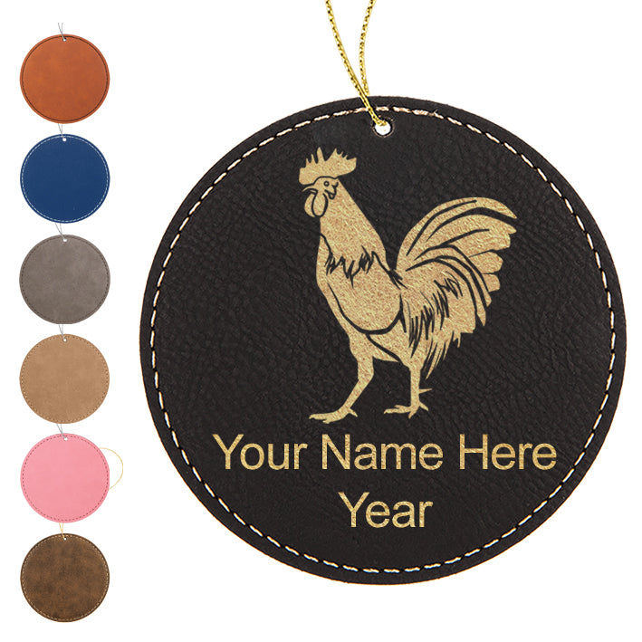 LaserGram Christmas Ornament, Rooster, Personalized Engraving Included (Faux Leather, Round Shape)