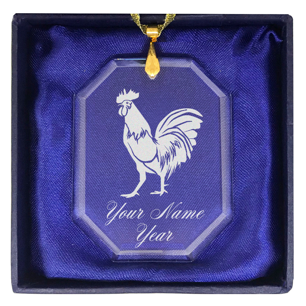 LaserGram Christmas Ornament, Rooster, Personalized Engraving Included (Rectangle Shape)