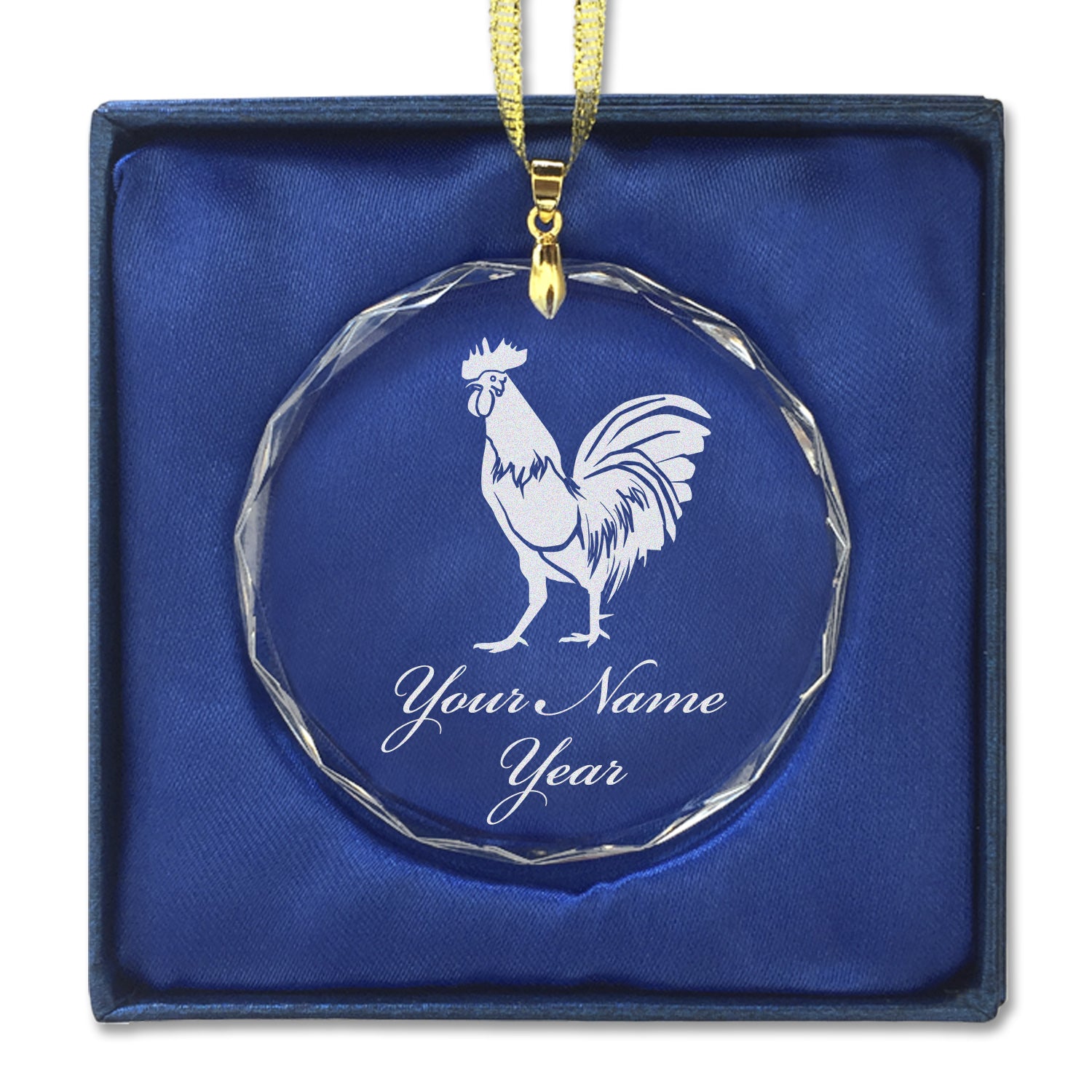 LaserGram Christmas Ornament, Rooster, Personalized Engraving Included (Round Shape)
