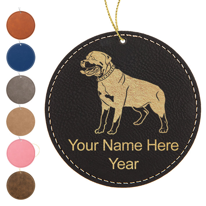 LaserGram Christmas Ornament, Rottweiler Dog, Personalized Engraving Included (Faux Leather, Round Shape)