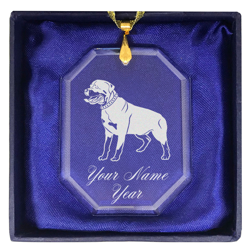 LaserGram Christmas Ornament, Rottweiler Dog, Personalized Engraving Included (Rectangle Shape)