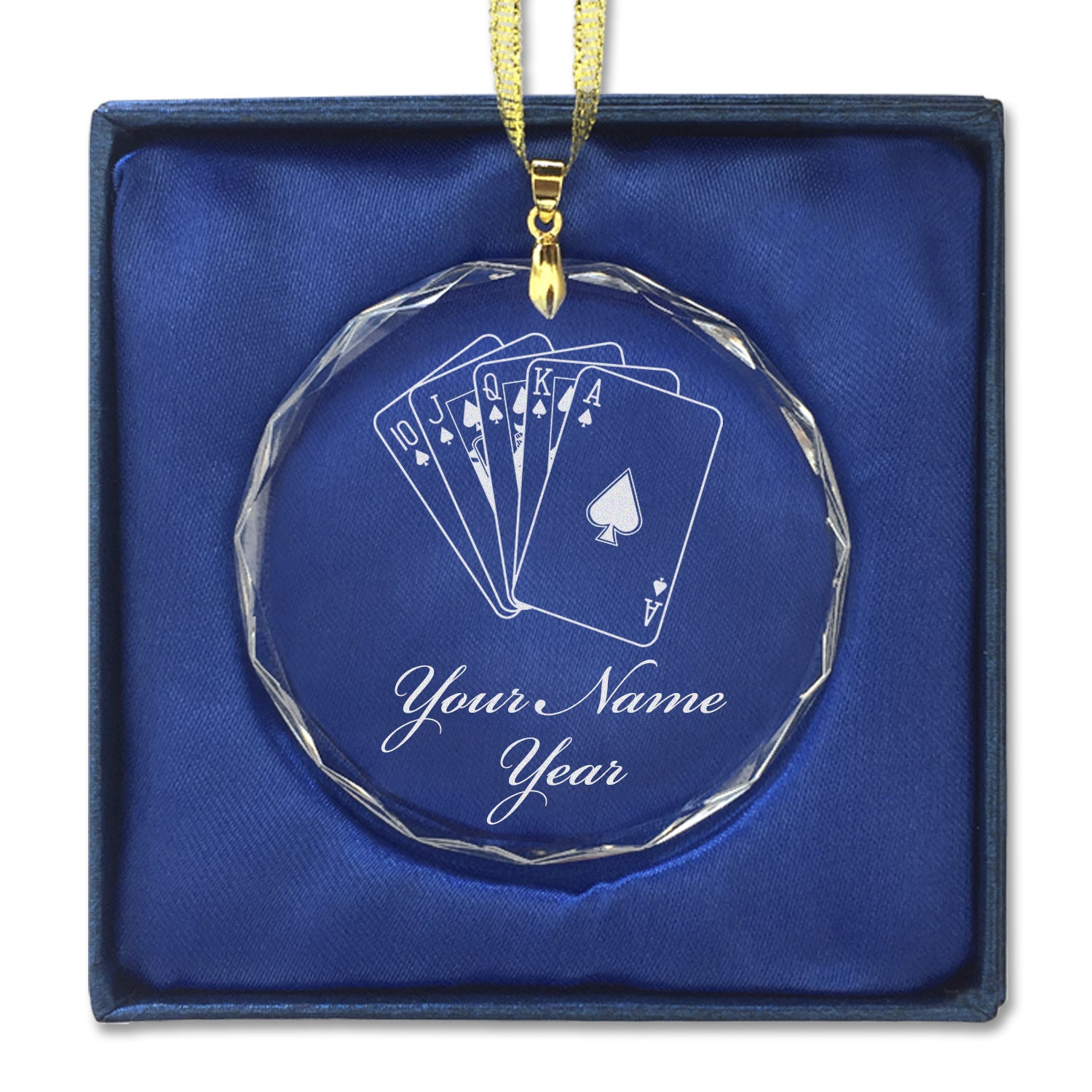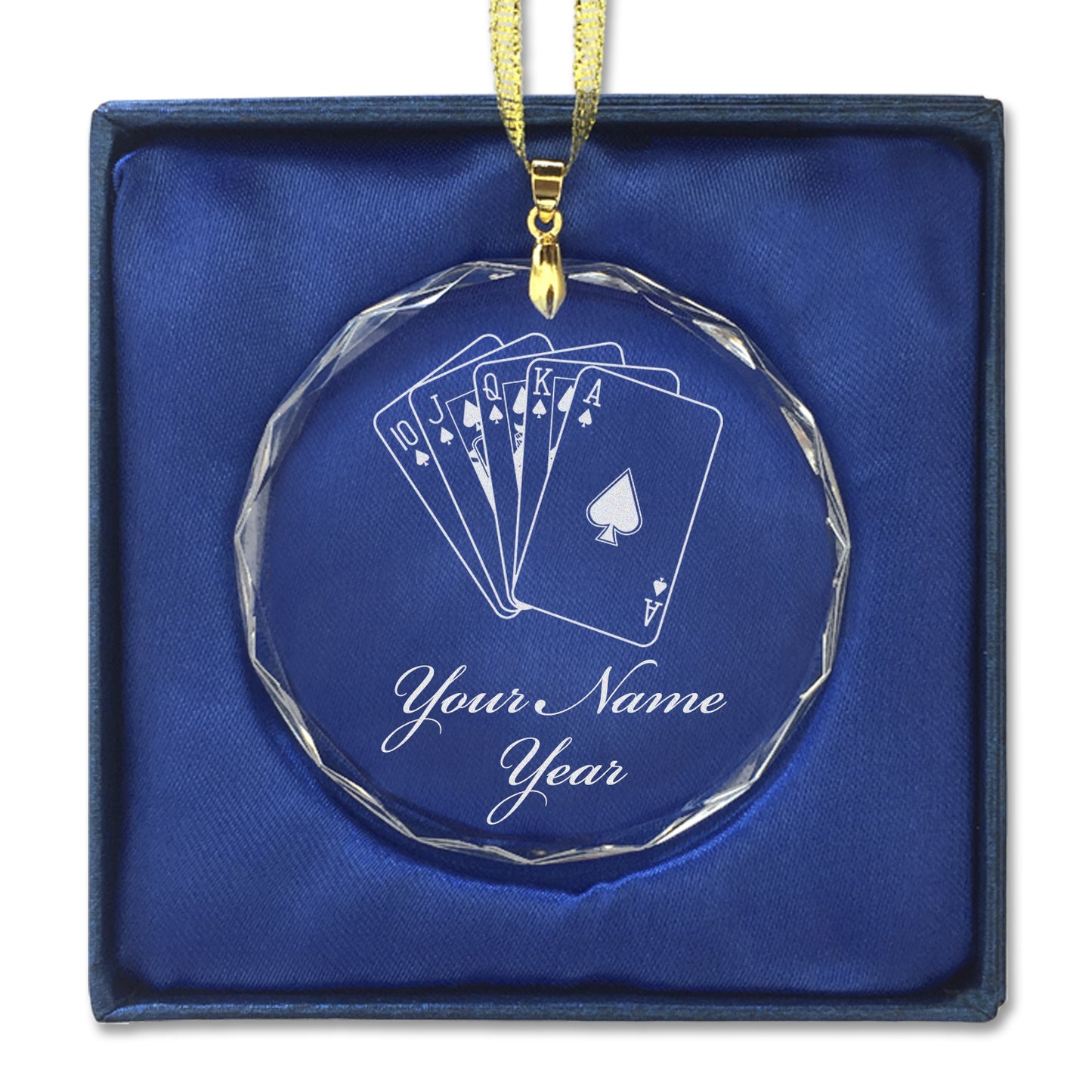 LaserGram Christmas Ornament, Royal Flush Poker Cards, Personalized Engraving Included (Round Shape)