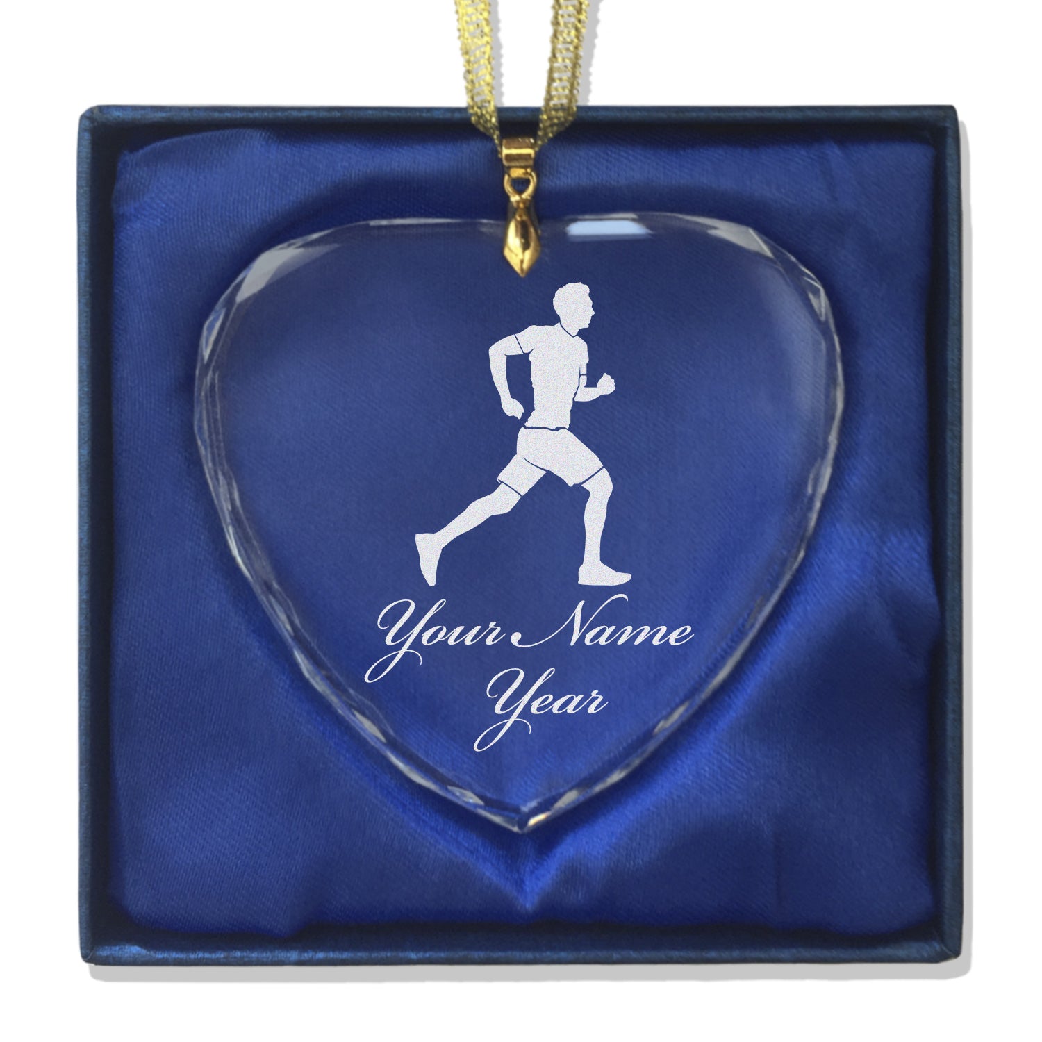 LaserGram Christmas Ornament, Running Man, Personalized Engraving Included (Heart Shape)
