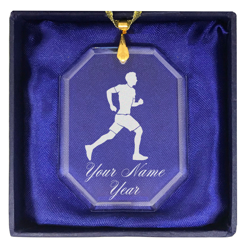 LaserGram Christmas Ornament, Running Man, Personalized Engraving Included (Rectangle Shape)