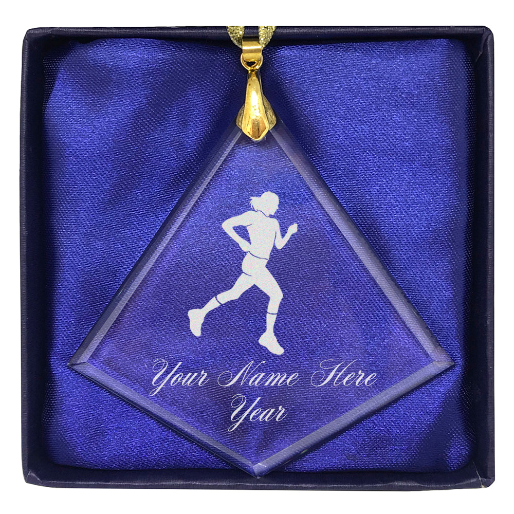 LaserGram Christmas Ornament, Running Woman, Personalized Engraving Included (Diamond Shape)