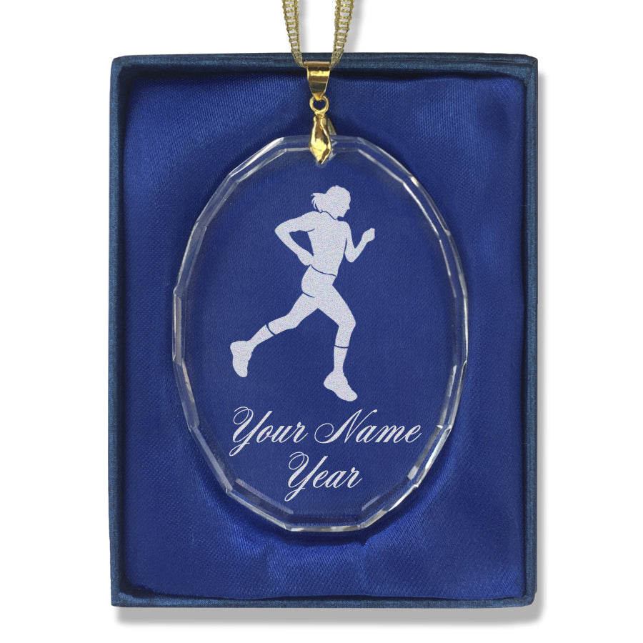 LaserGram Christmas Ornament, Running Woman, Personalized Engraving Included (Oval Shape)