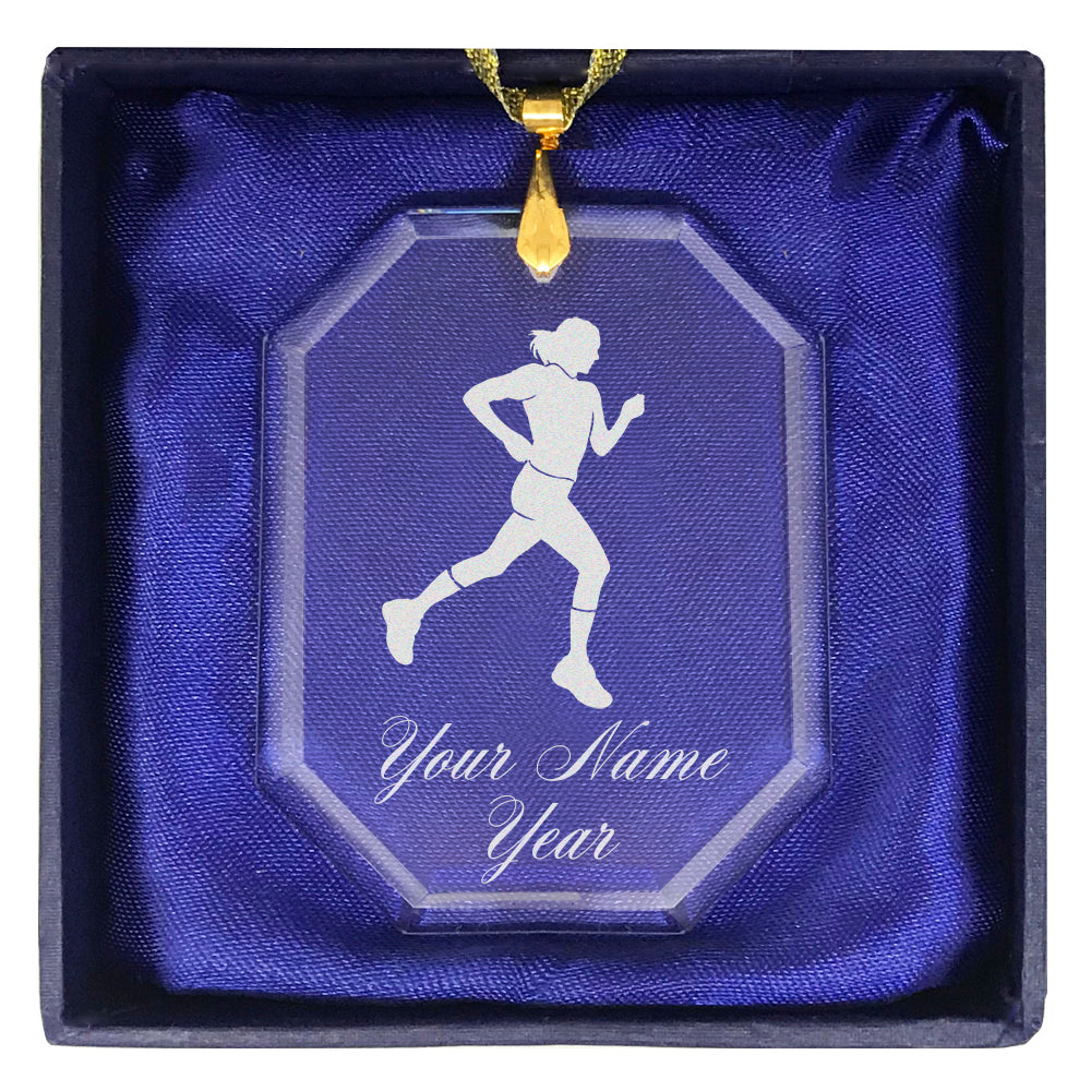LaserGram Christmas Ornament, Running Woman, Personalized Engraving Included (Rectangle Shape)