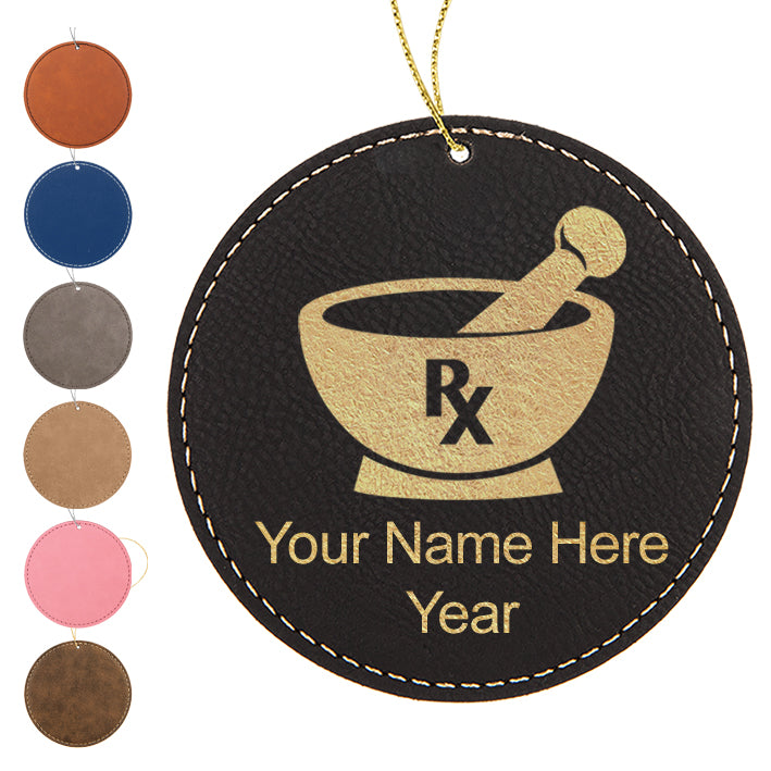 LaserGram Christmas Ornament, Rx Pharmacy Symbol, Personalized Engraving Included (Faux Leather, Round Shape)