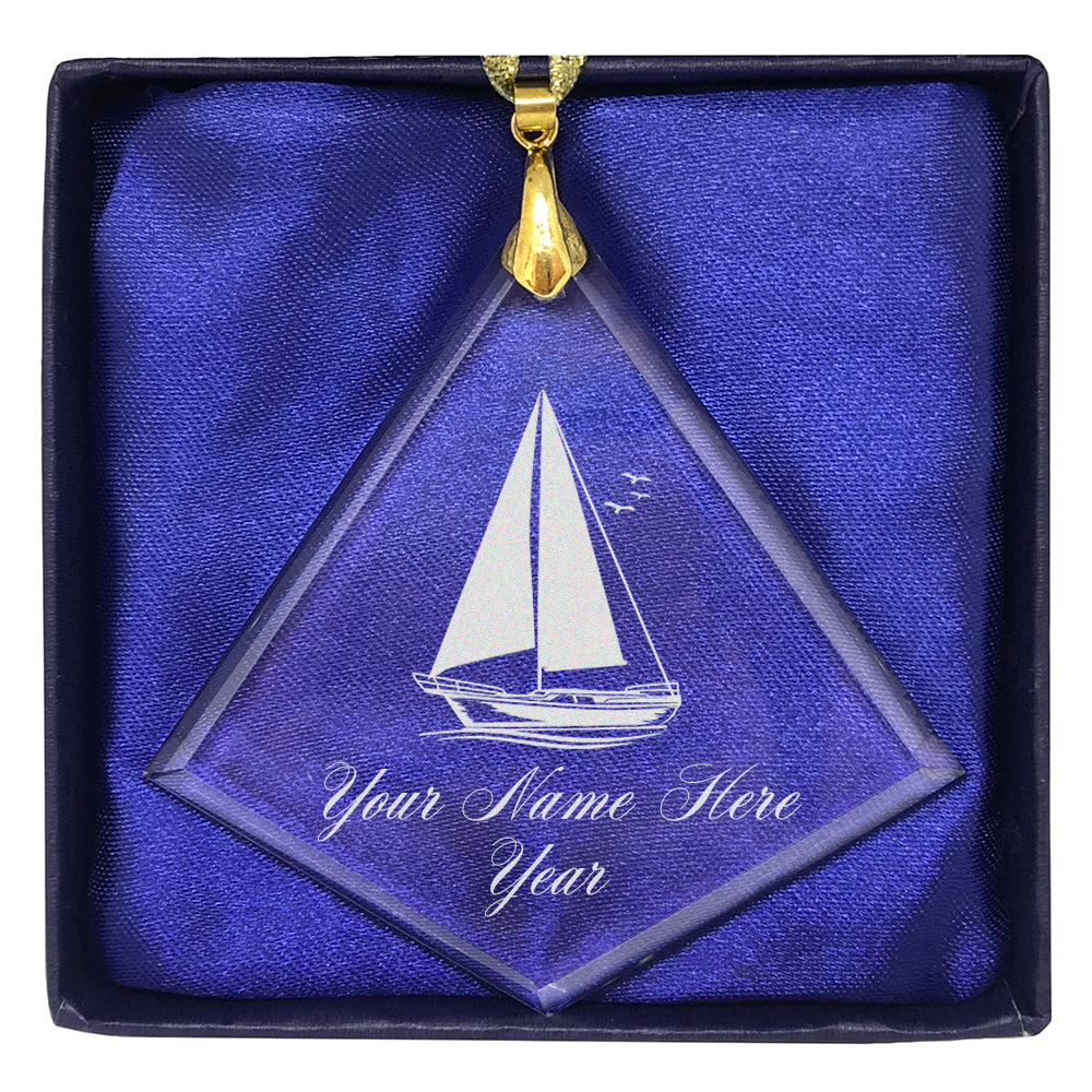 LaserGram Christmas Ornament, Sailboat, Personalized Engraving Included (Diamond Shape)