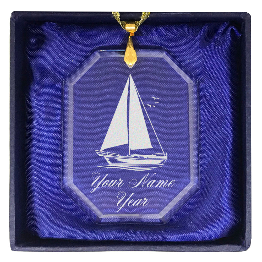 LaserGram Christmas Ornament, Sailboat, Personalized Engraving Included (Rectangle Shape)