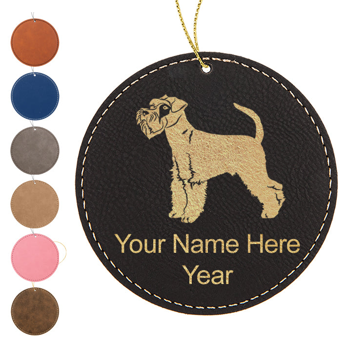 LaserGram Christmas Ornament, Schnauzer Dog, Personalized Engraving Included (Faux Leather, Round Shape)