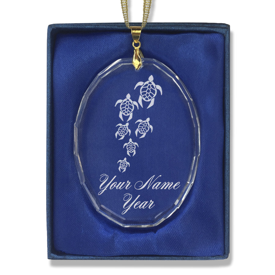 LaserGram Christmas Ornament, Sea Turtle Family, Personalized Engraving Included (Oval Shape)