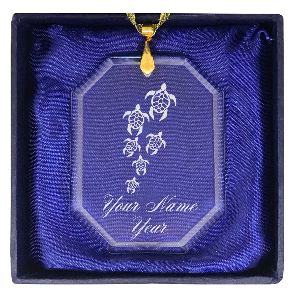 LaserGram Christmas Ornament, Sea Turtle Family, Personalized Engraving Included (Rectangle Shape)