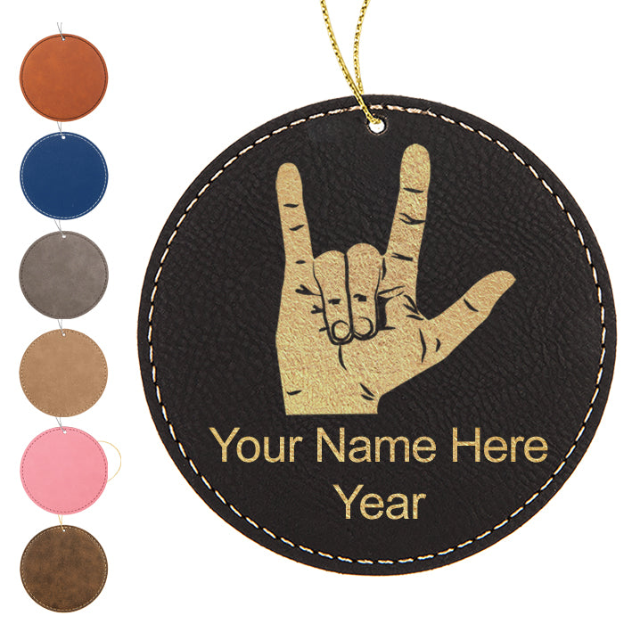 LaserGram Christmas Ornament, Sign Language I Love You, Personalized Engraving Included (Faux Leather, Round Shape)