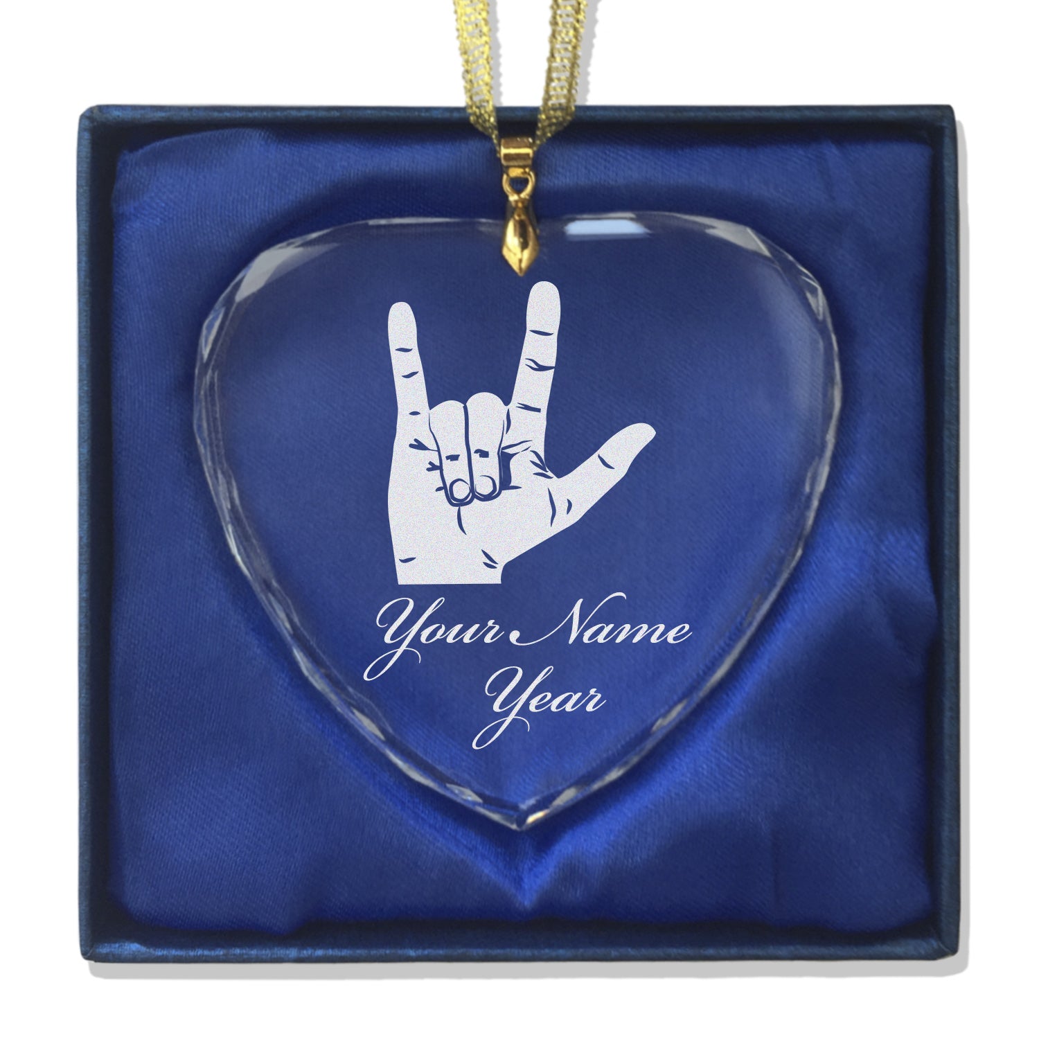 LaserGram Christmas Ornament, Sign Language I Love You, Personalized Engraving Included (Heart Shape)