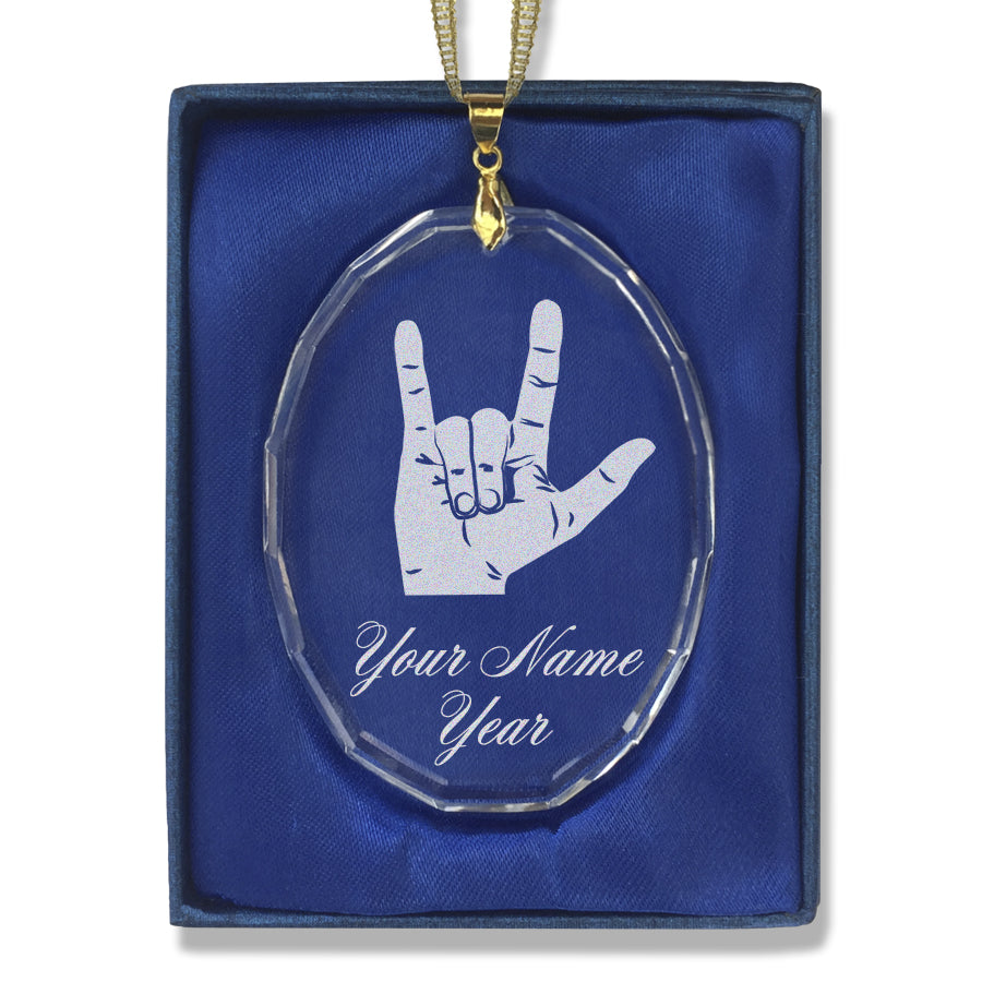 LaserGram Christmas Ornament, Sign Language I Love You, Personalized Engraving Included (Oval Shape)