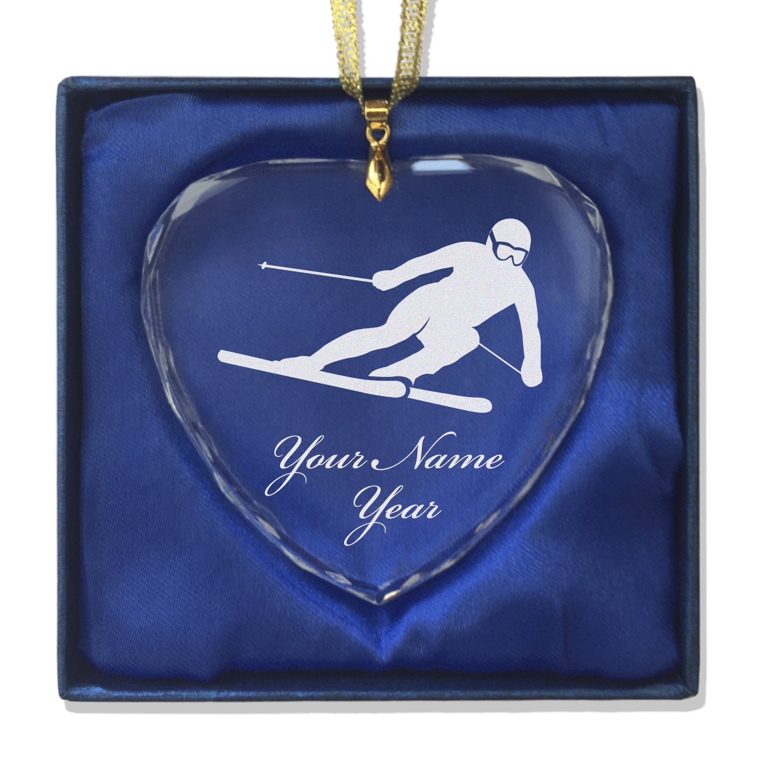 LaserGram Christmas Ornament, Skier Downhill, Personalized Engraving Included (Heart Shape)