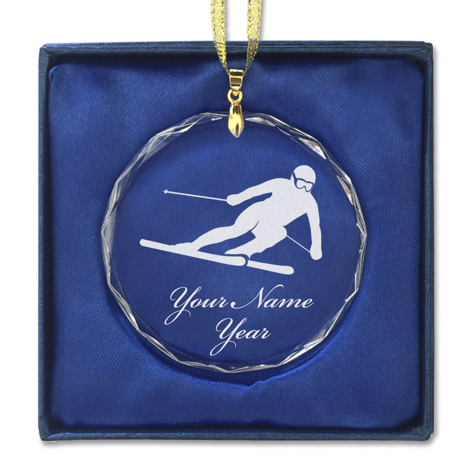 LaserGram Christmas Ornament, Skier Downhill, Personalized Engraving Included (Round Shape)