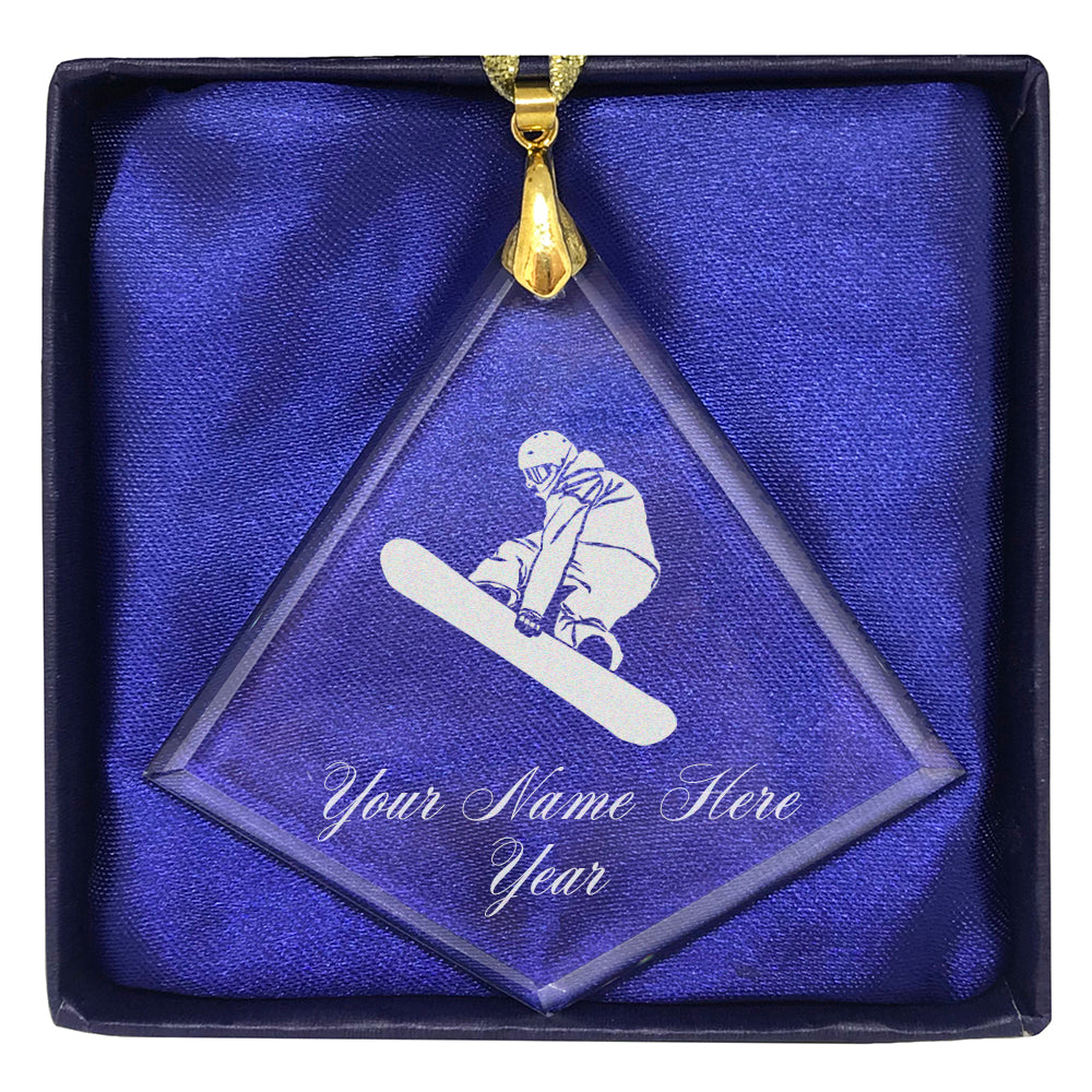 LaserGram Christmas Ornament, Snowboarder Man, Personalized Engraving Included (Diamond Shape)