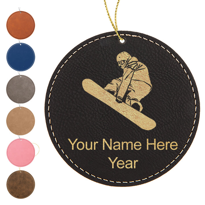 LaserGram Christmas Ornament, Snowboarder Man, Personalized Engraving Included (Faux Leather, Round Shape)