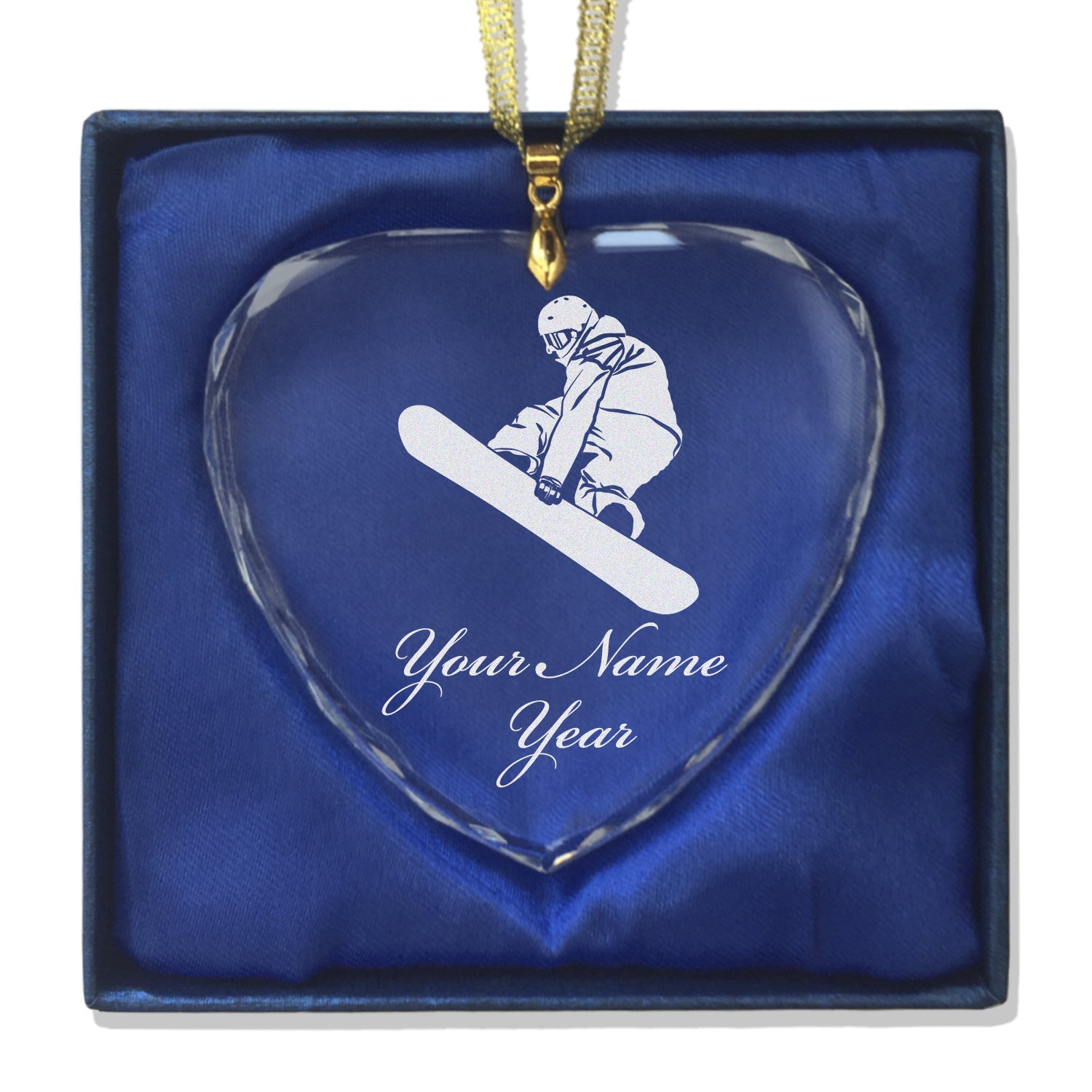 LaserGram Christmas Ornament, Snowboarder Man, Personalized Engraving Included (Heart Shape)