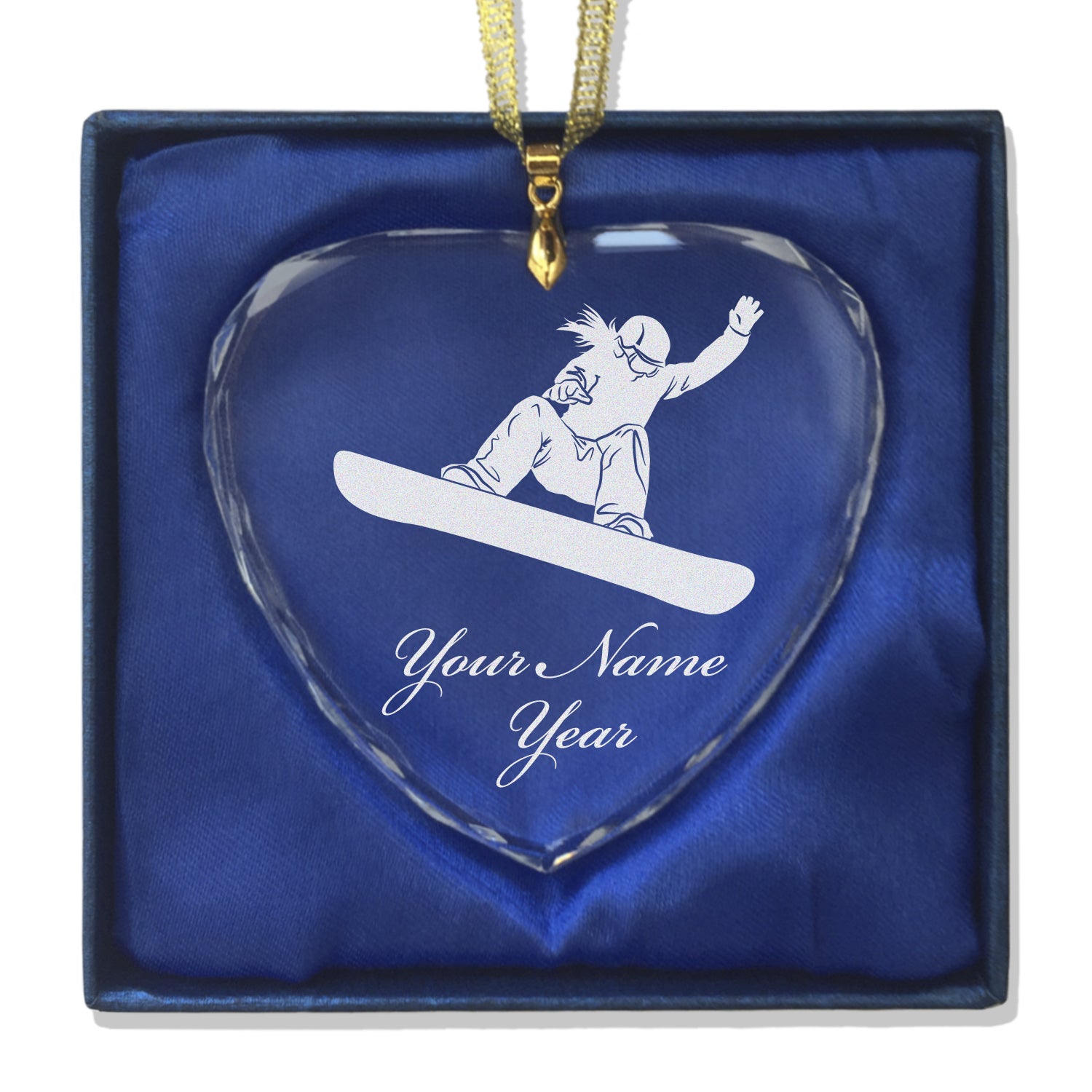 LaserGram Christmas Ornament, Snowboarder Woman, Personalized Engraving Included (Heart Shape)