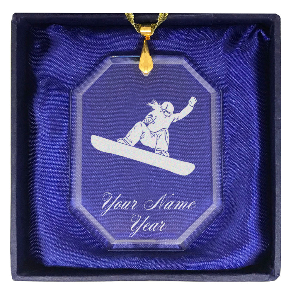 LaserGram Christmas Ornament, Snowboarder Woman, Personalized Engraving Included (Rectangle Shape)