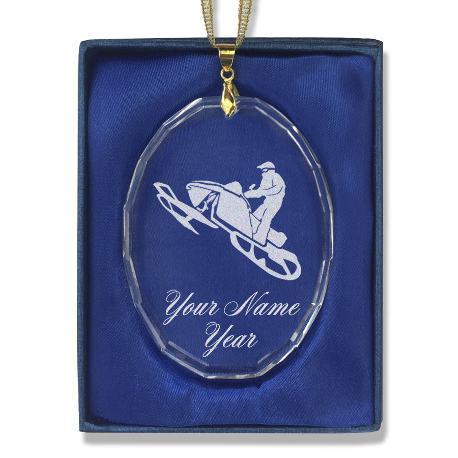 LaserGram Christmas Ornament, Snowmobile, Personalized Engraving Included (Oval Shape)