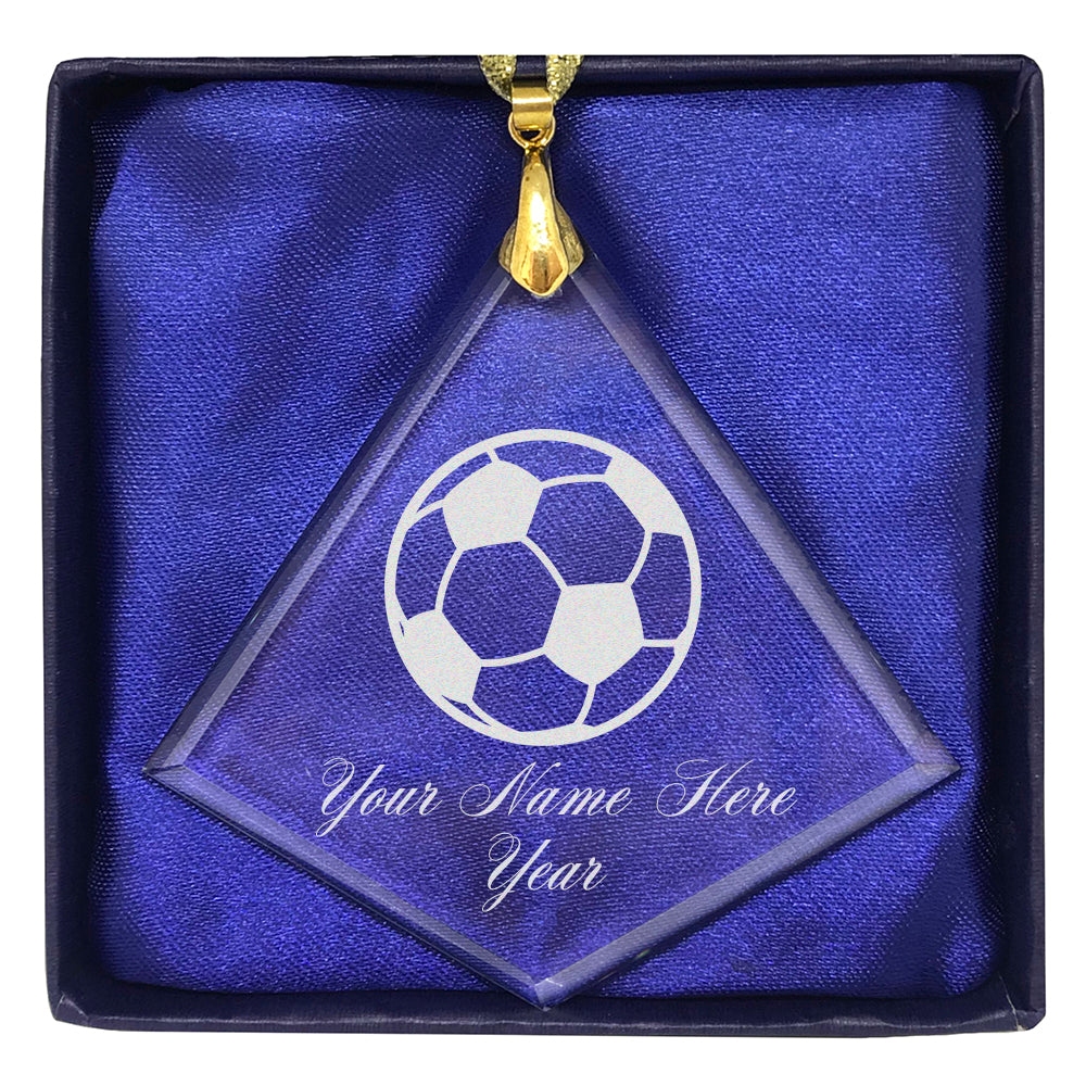 LaserGram Christmas Ornament, Soccer Ball, Personalized Engraving Included (Diamond Shape)
