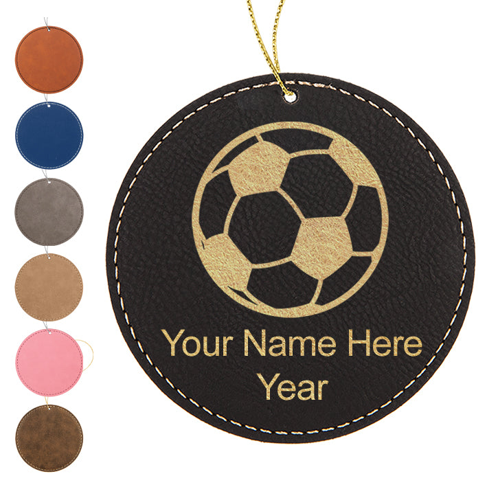 LaserGram Christmas Ornament, Soccer Ball, Personalized Engraving Included (Faux Leather, Round Shape)