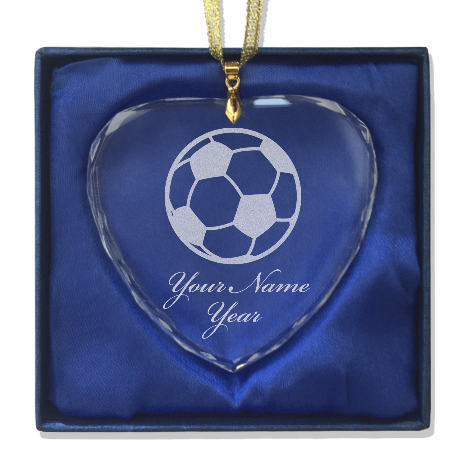 LaserGram Christmas Ornament, Soccer Ball, Personalized Engraving Included (Heart Shape)