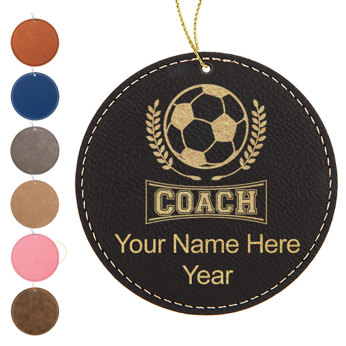 LaserGram Christmas Ornament, Soccer Coach, Personalized Engraving Included (Faux Leather, Round Shape)
