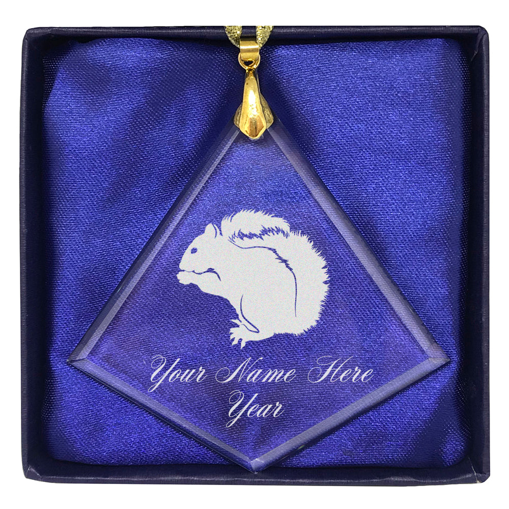 LaserGram Christmas Ornament, Squirrel, Personalized Engraving Included (Diamond Shape)
